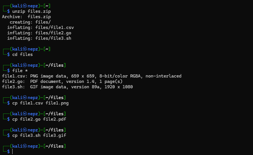 For this challenge, all we have to do is to change the file extensions to whatever they should be.