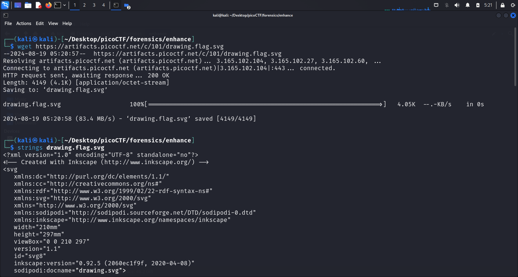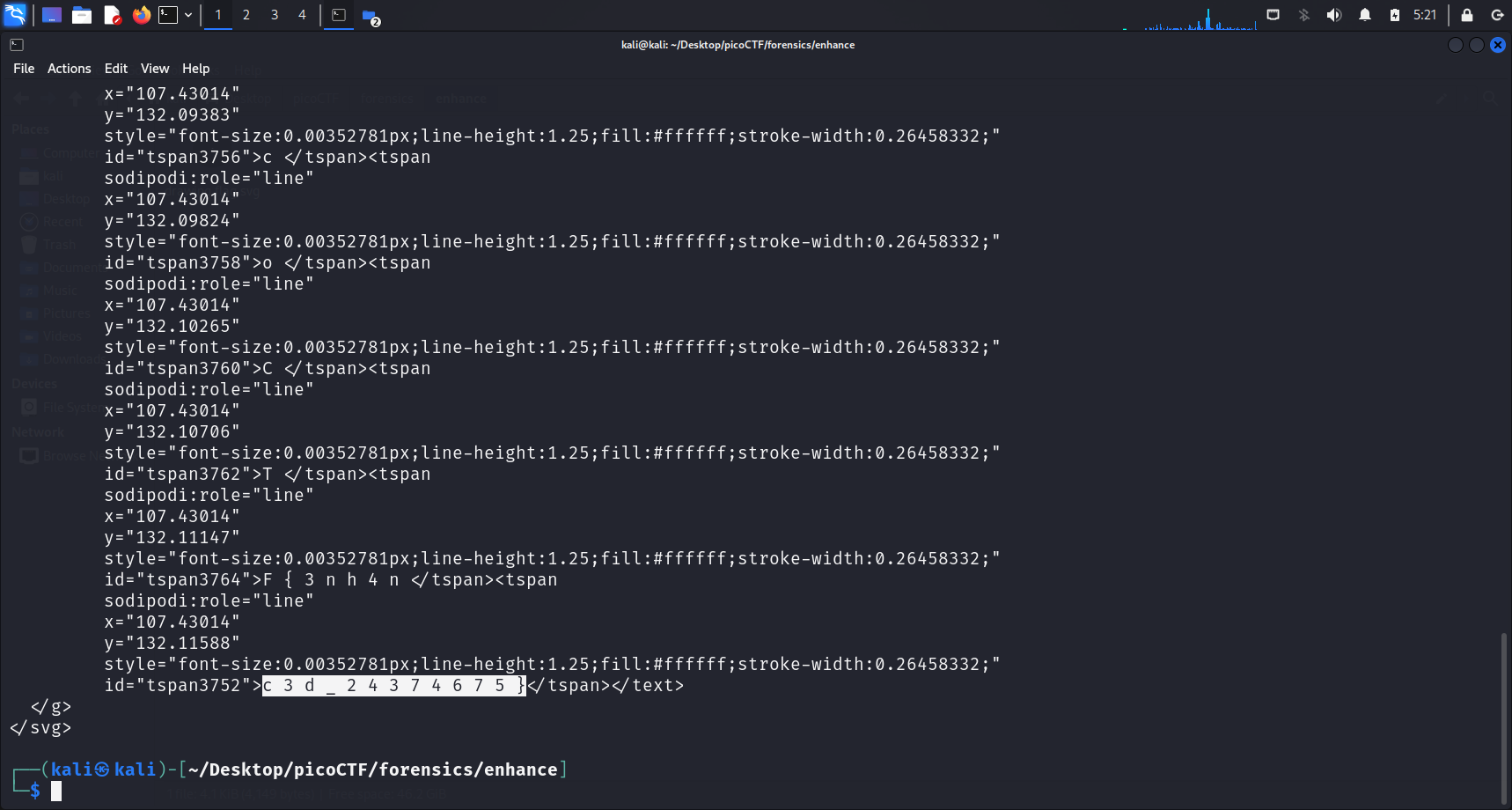 The only difficulty of this challenge is to realise that the flag was split into different parts. All we have to do is join “p”, “i”, “c”,“o”, “C”, “T”, “F { 3 n h 4 n ” and “c 3 d _ 2 4 3 7 4 6 7 5 }” and we have our flag.
