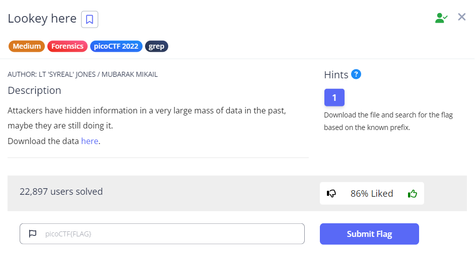 PicoCTF Hint: Download the file and search for the flag based on the known prefix.