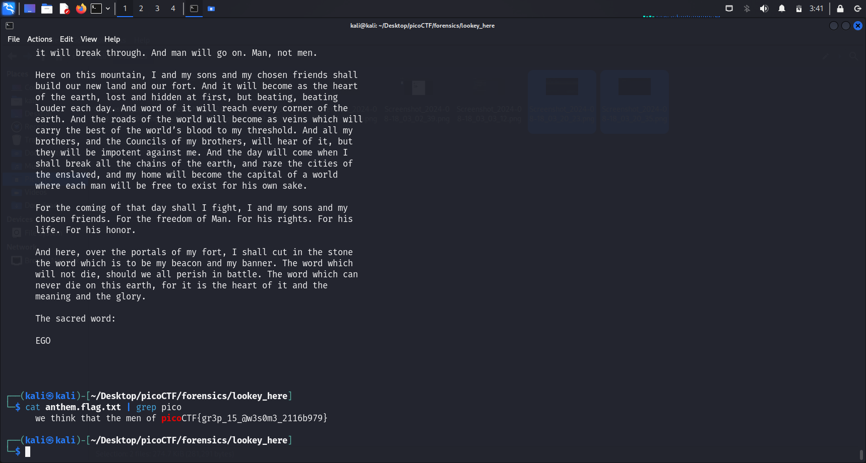 Based on the hint, it seems like we will have to search for the flag using grep pico