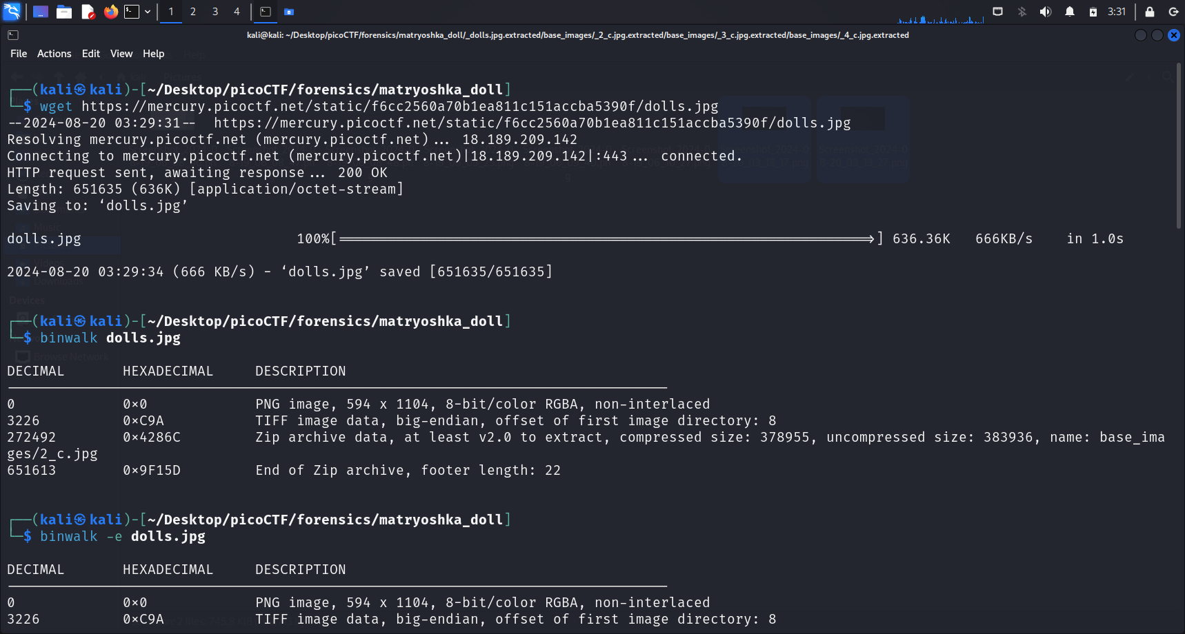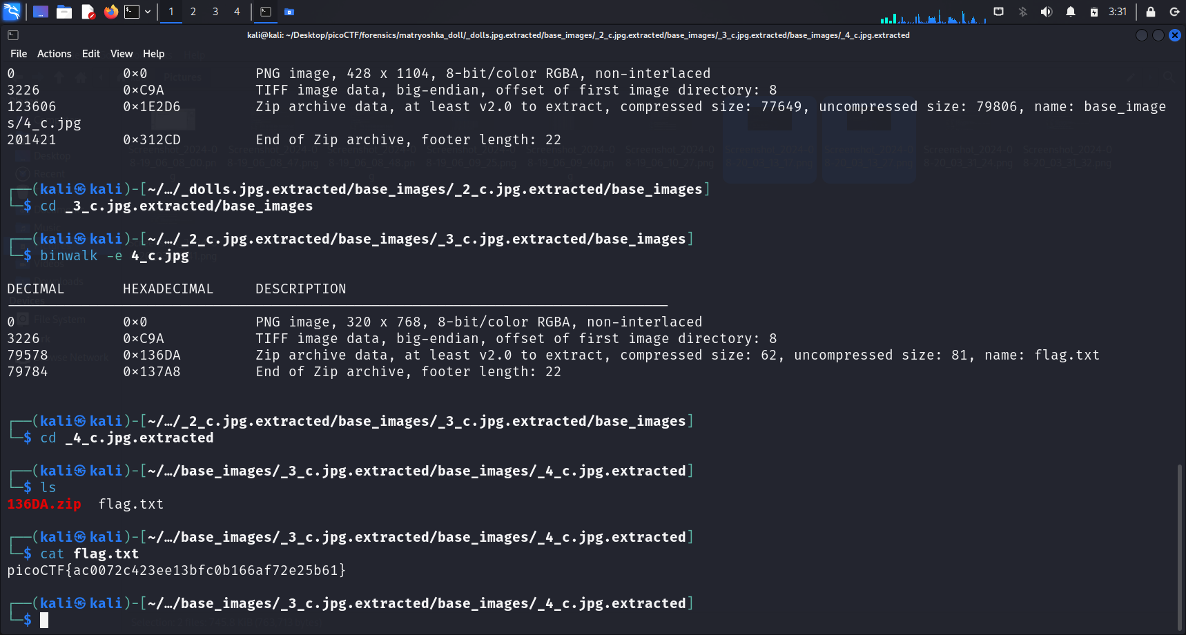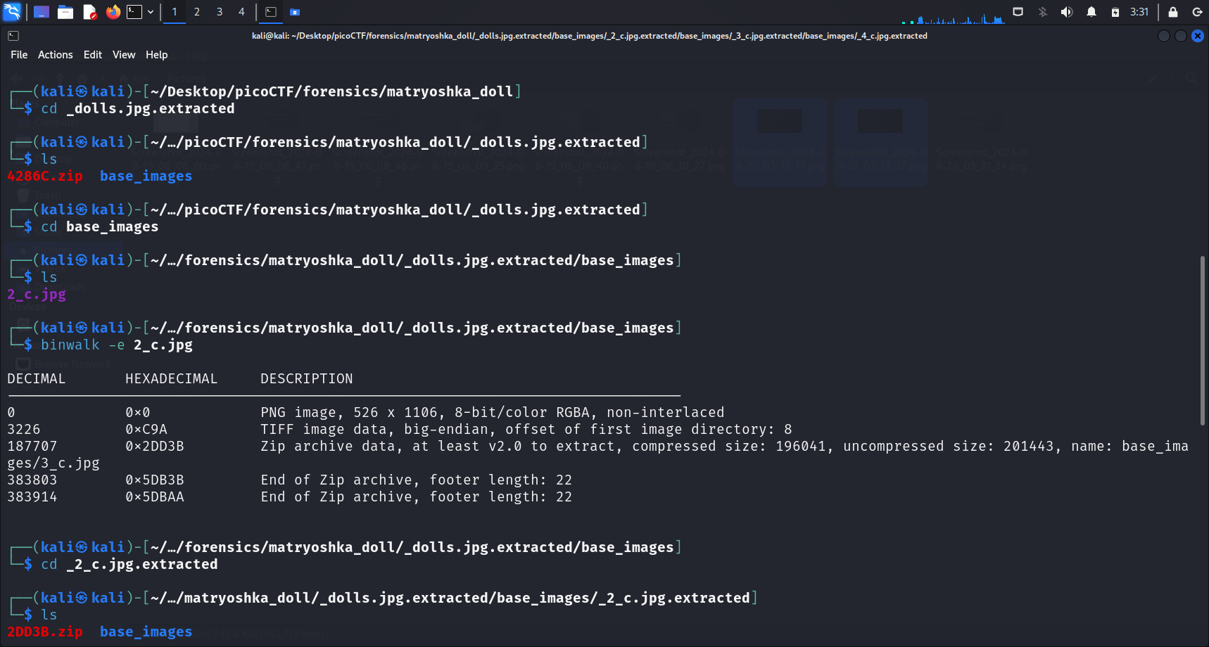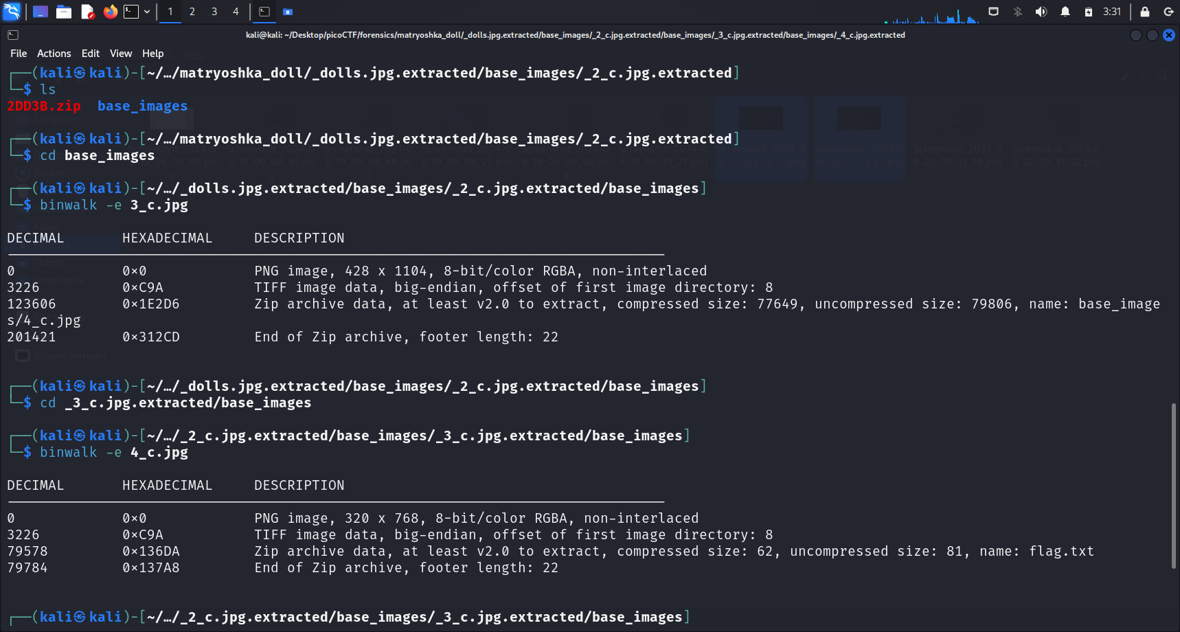 file and another directory was extracted. Since this challenge was named “Matryoshka doll”, I wasted no time and cd