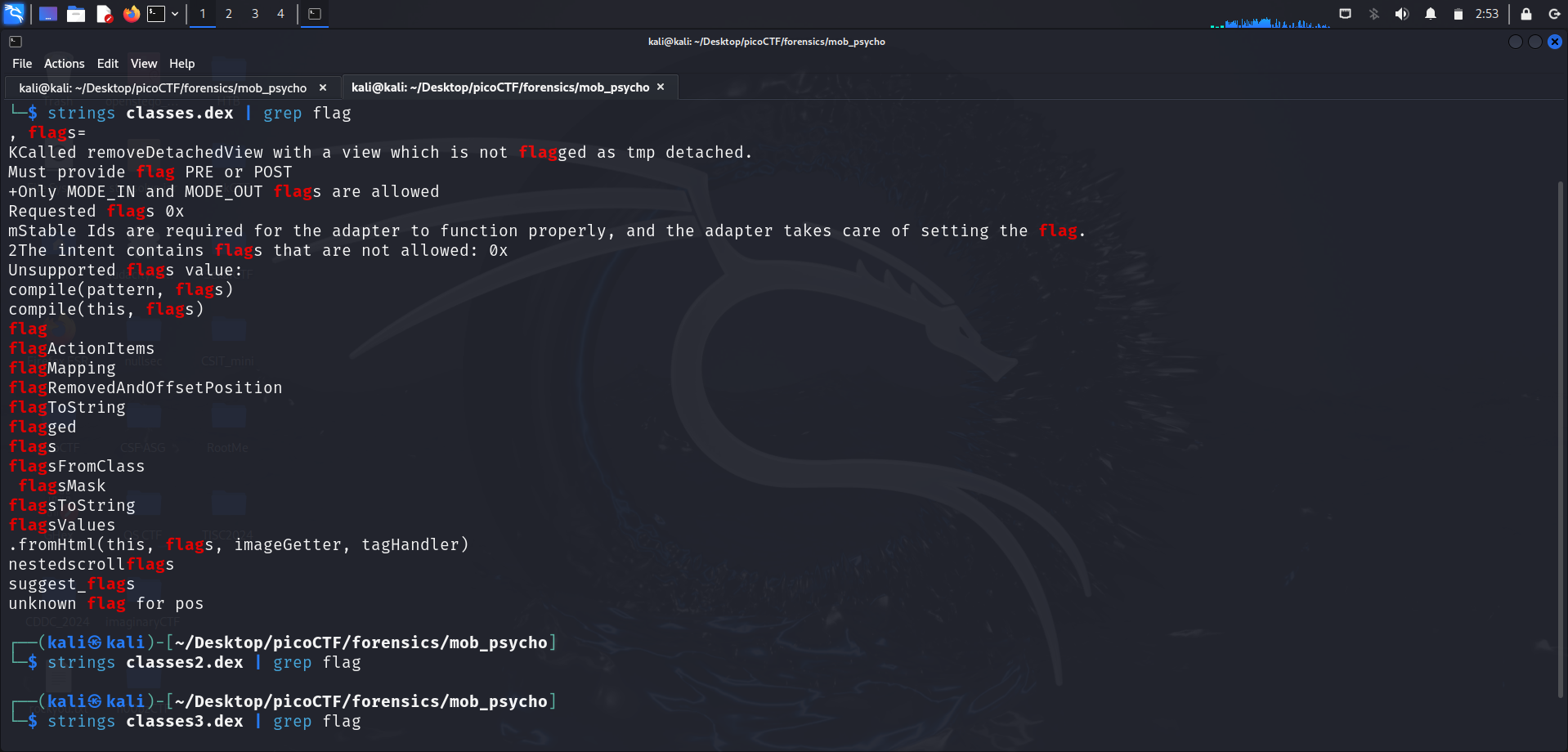 I opened a separate terminal and ran strings <file-name> | grep flag