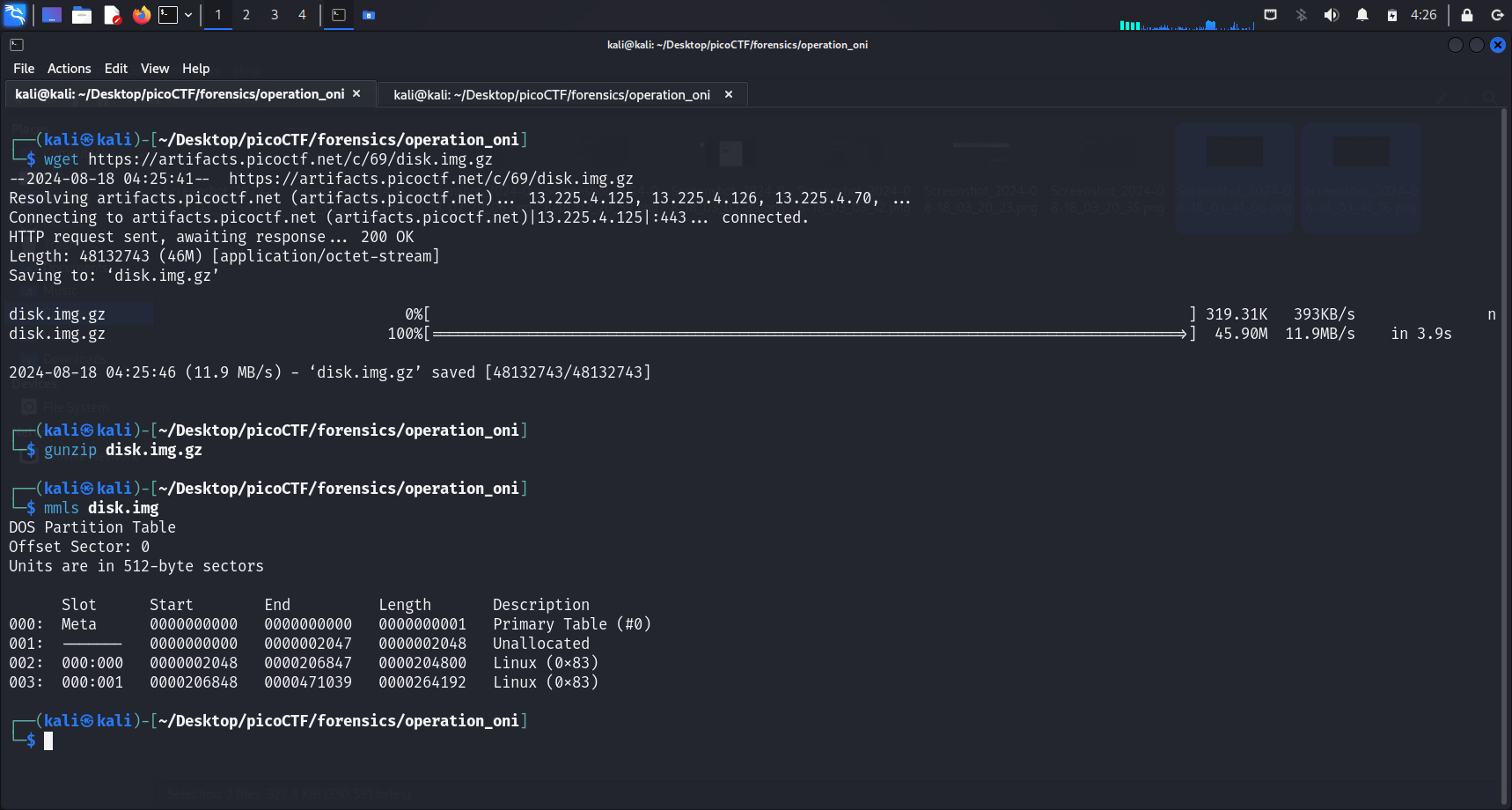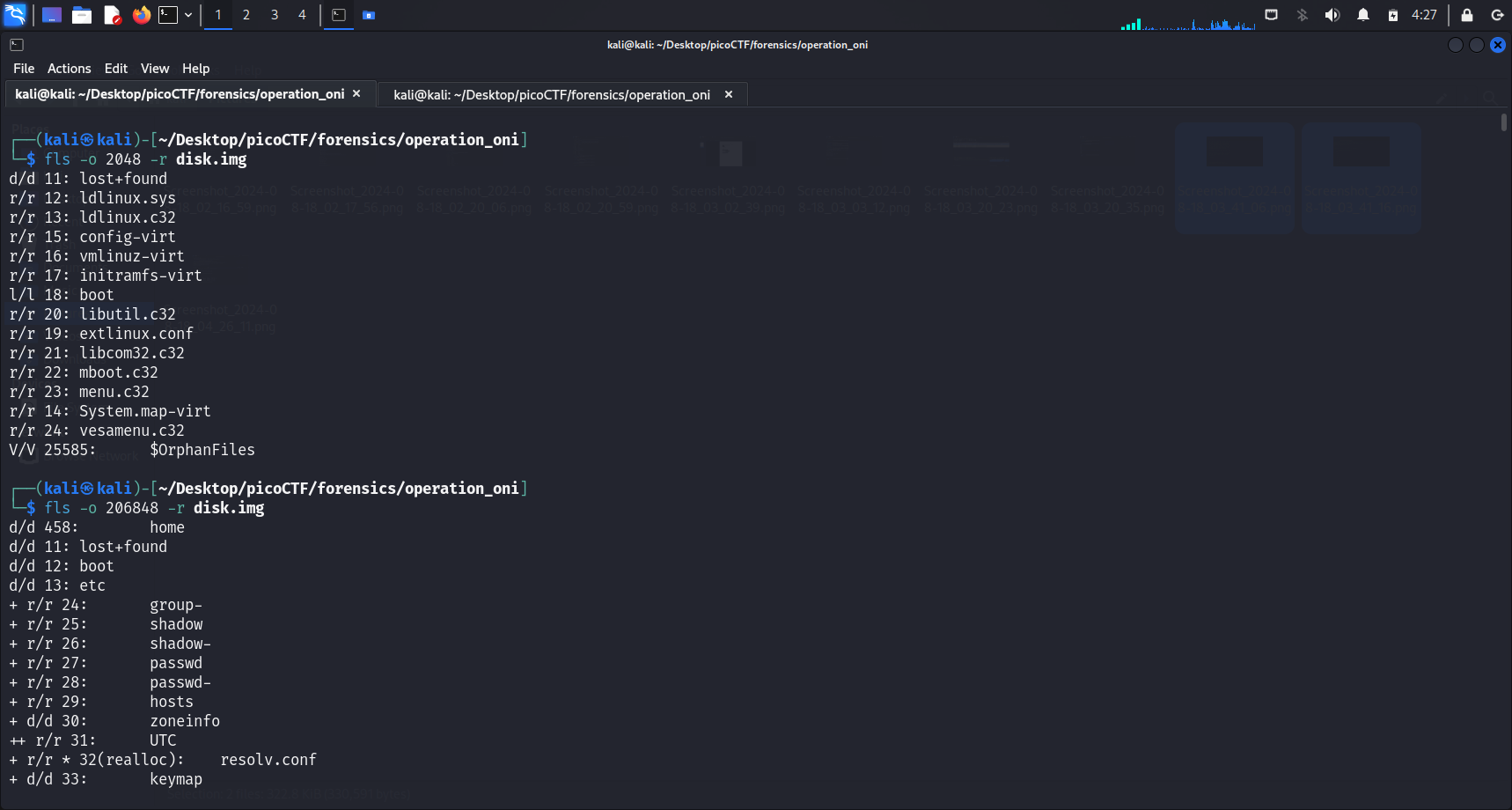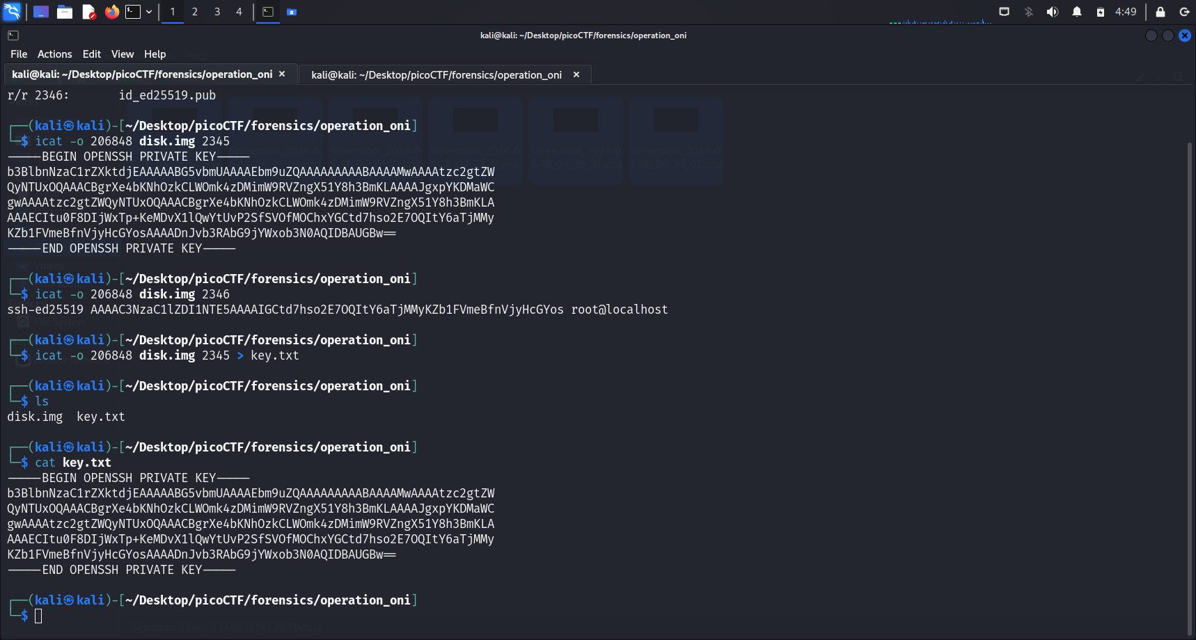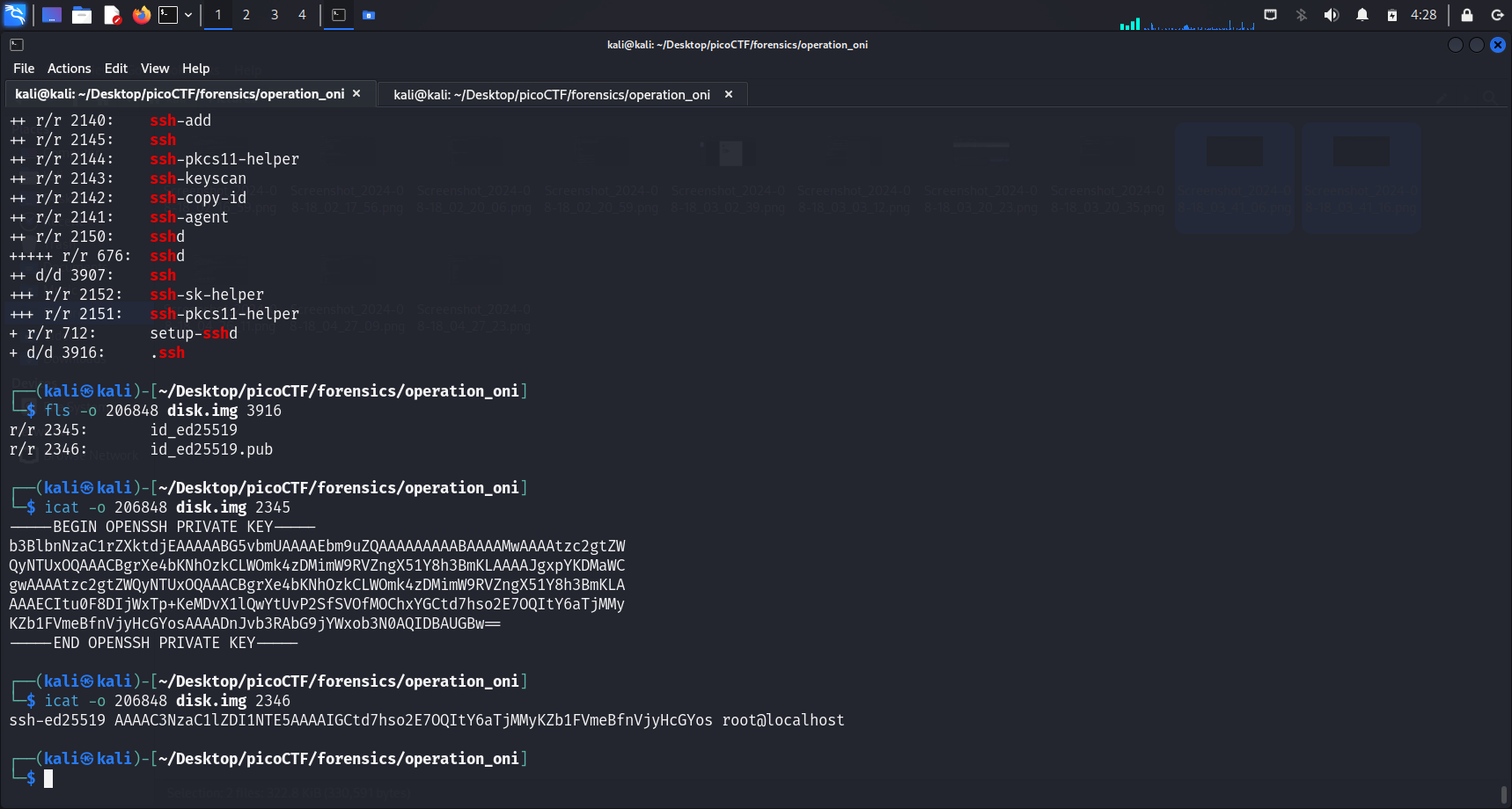 After we ran icat -o 206848 disk.img 2345