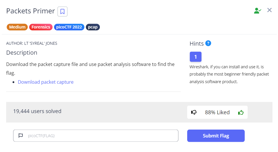 Seems like a typical network forensics challenge. After downloading the pcap file using wget