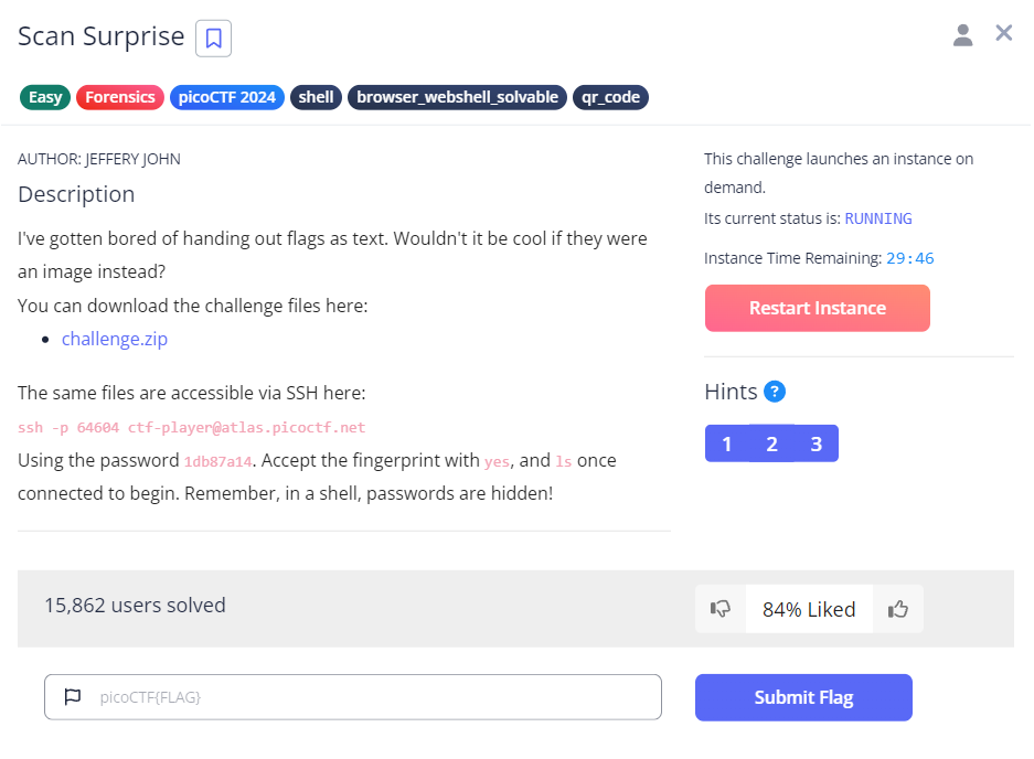 A straightforward challenge. All we have to do is follow the instructions and connect to the server via SSH, where we will be greeted with a QR Code: