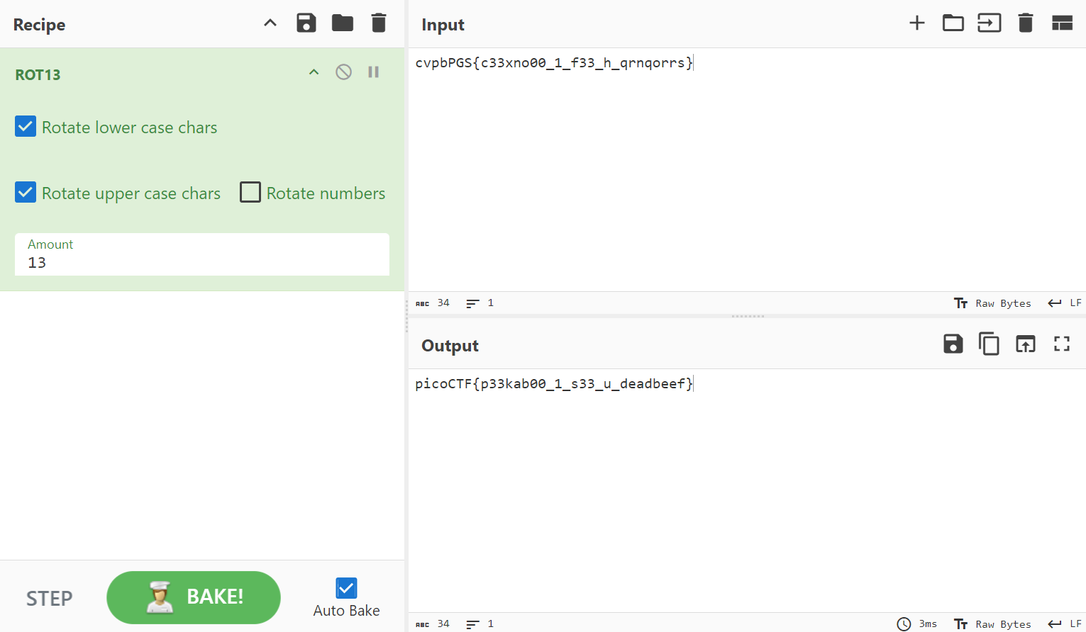 Since it highlighted that the string may have been encrypted using ROT13, I headed to CyberChef to obtain our flag. https://rot13.com/ also works.