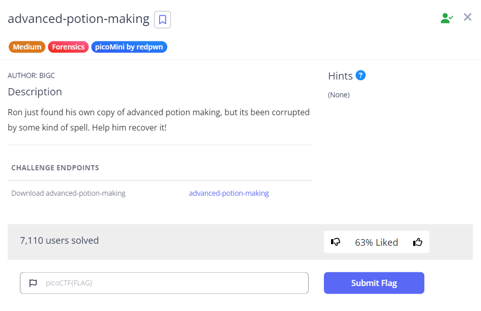 file extension to the file, and tested this file for corruption using pngcheck -v advanced-potion-making.png
