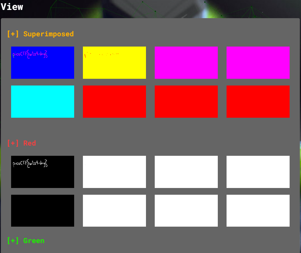 I then headed over to https://29a.ch/photo-forensics/#forensic-magnifier to see if I can retrieve the flag by magnifying the image. Indeed, hovering over specific portions of the image reveals parts of the flag. I would be able to get the flag from this. But this process would be rather tedious if I rely solely on magnification.