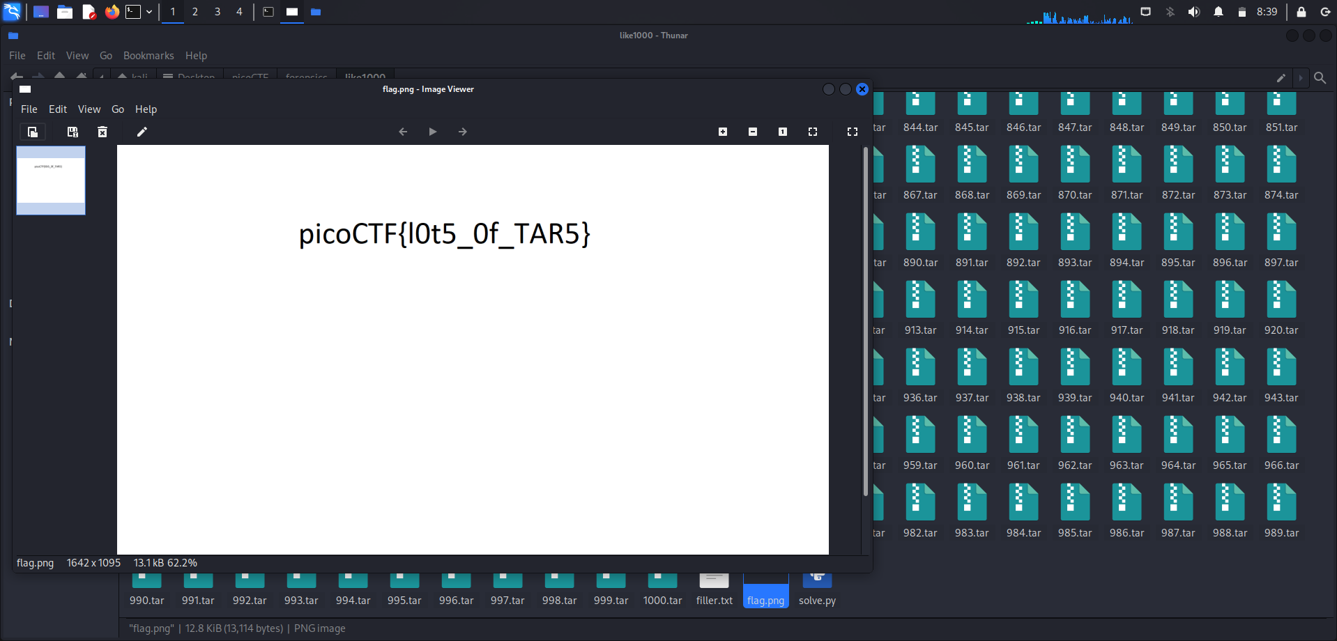 After running tar -xvf 1000.tar, we can see that 2 files have been created (999.tar and filler.txt).