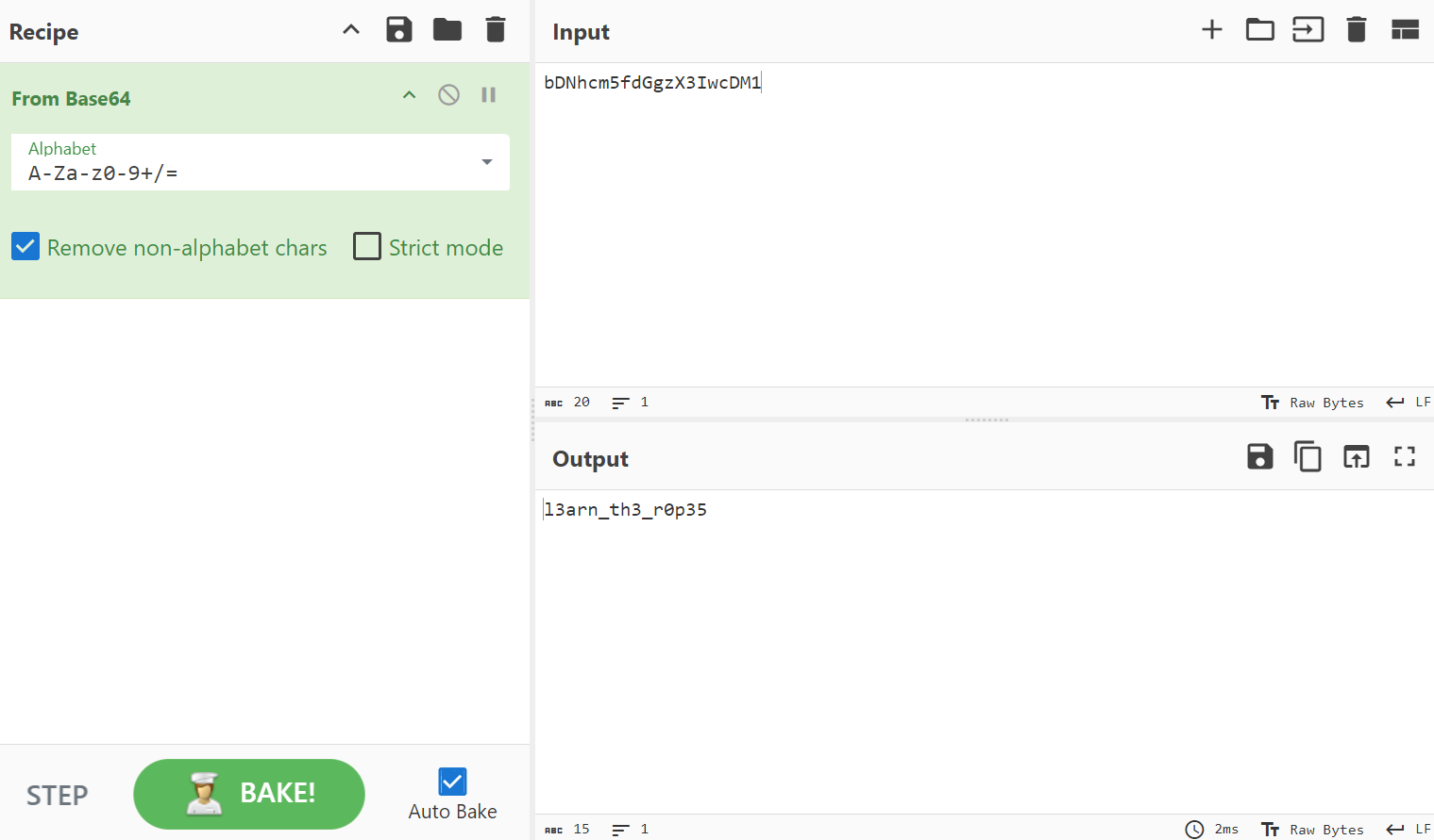 For my past CTF challenges, it is quite a common occurrence for flags to be Base64 encoded. Let’s test the hypothesis.