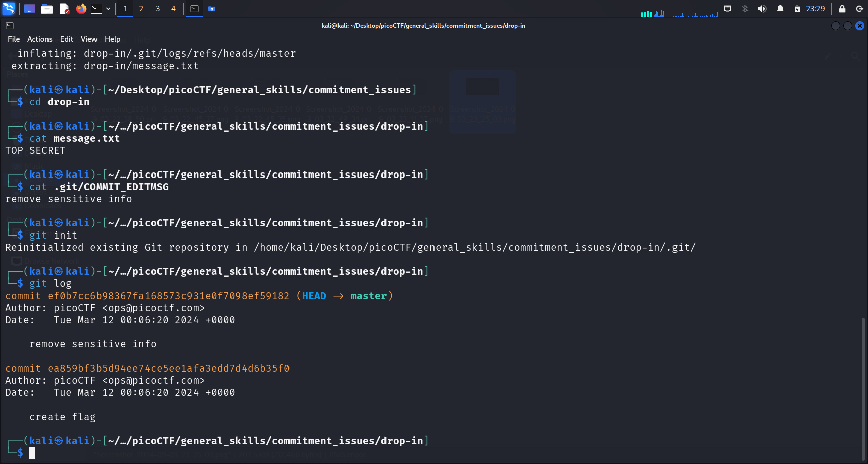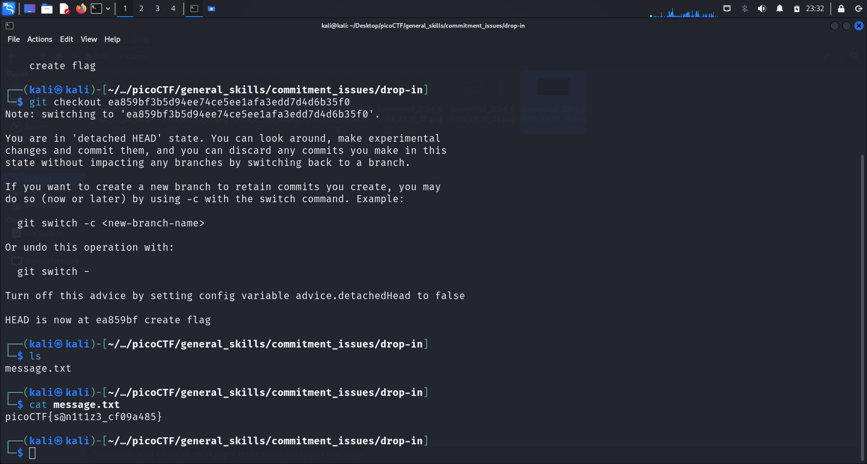 PicoCTF Hint: You can 'checkout' commits to see the files inside them