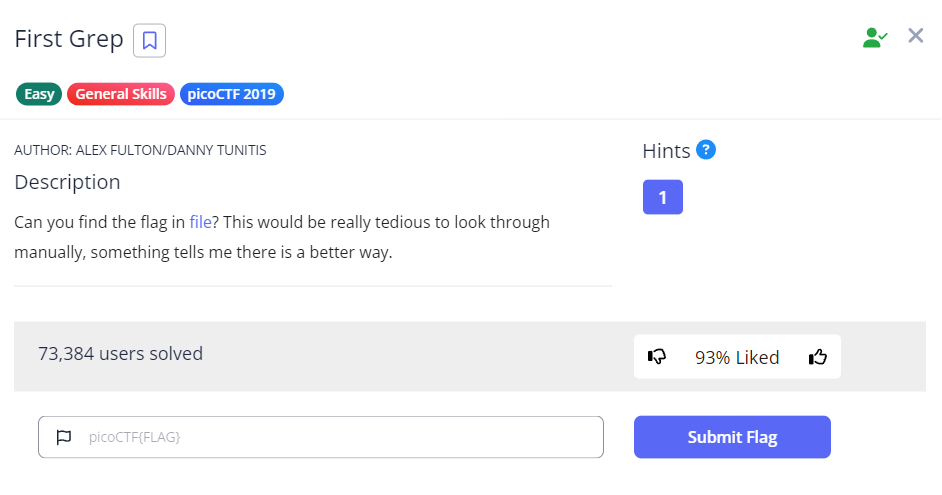 Yep, as the challenge description suggests, we just need to pipe the contents of the downloaded file through grep