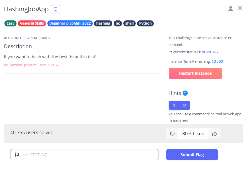From the challenge description and name, we can tell that the challenge’s about cryptographic hash functions. But we don’t know which.