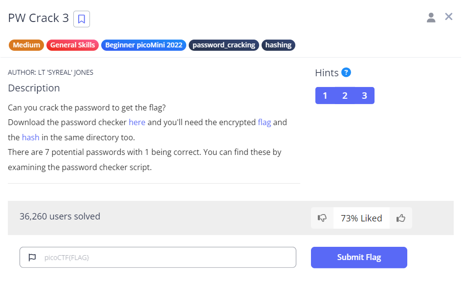 When we run this script, we are required to enter the correct password to obtain the flag. The flag will only be revealed once our (hashed) password has been validated.