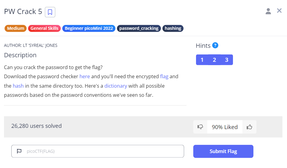 In this challenge, we will be cracking a password using a dictionary attack, which is a brute-force approach.