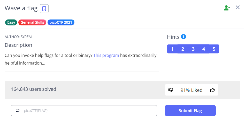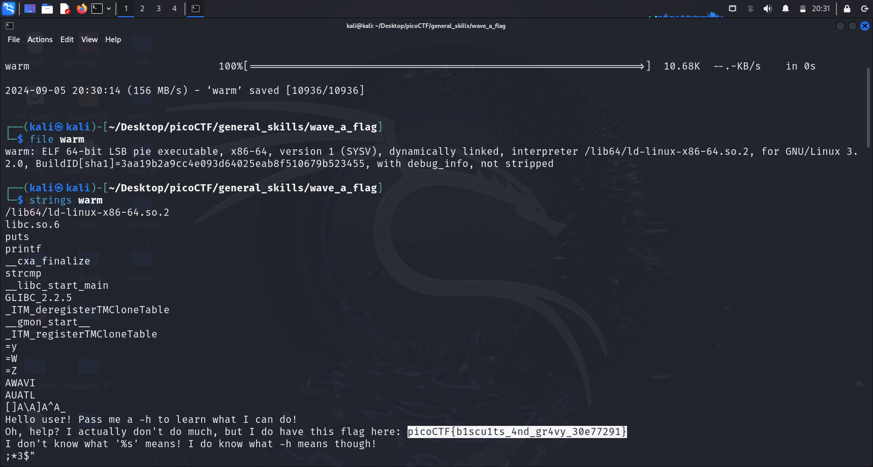 This challenge is basically identical to a previous challenge I’ve completed (strings it). We first download the challenge file using wget <link>
