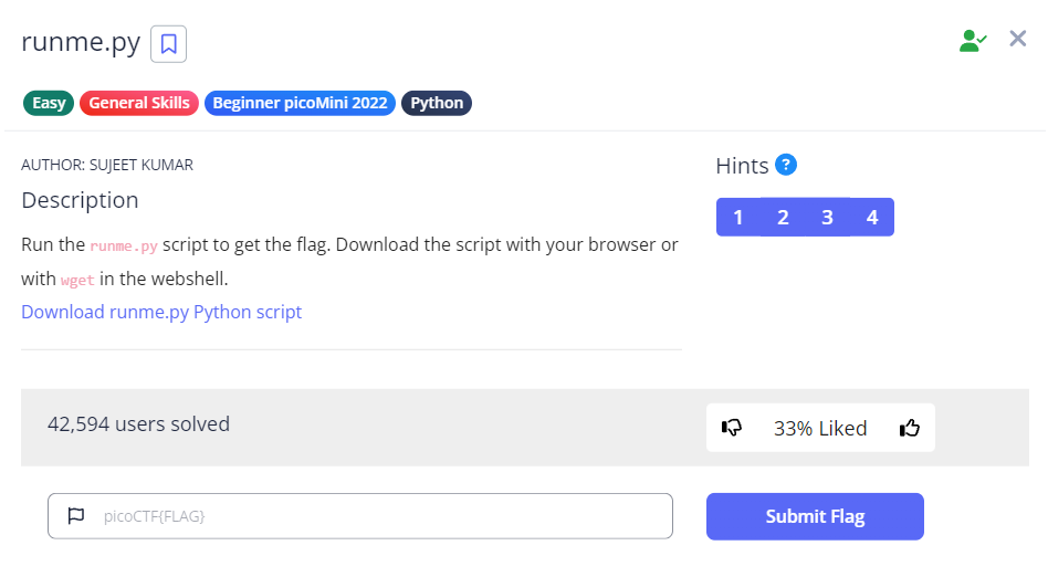 to check the script. I did not expect to get the flag so soon, but seems like we did! I did not even have to run the python script, as all the script does is print the flag (which I can already see).